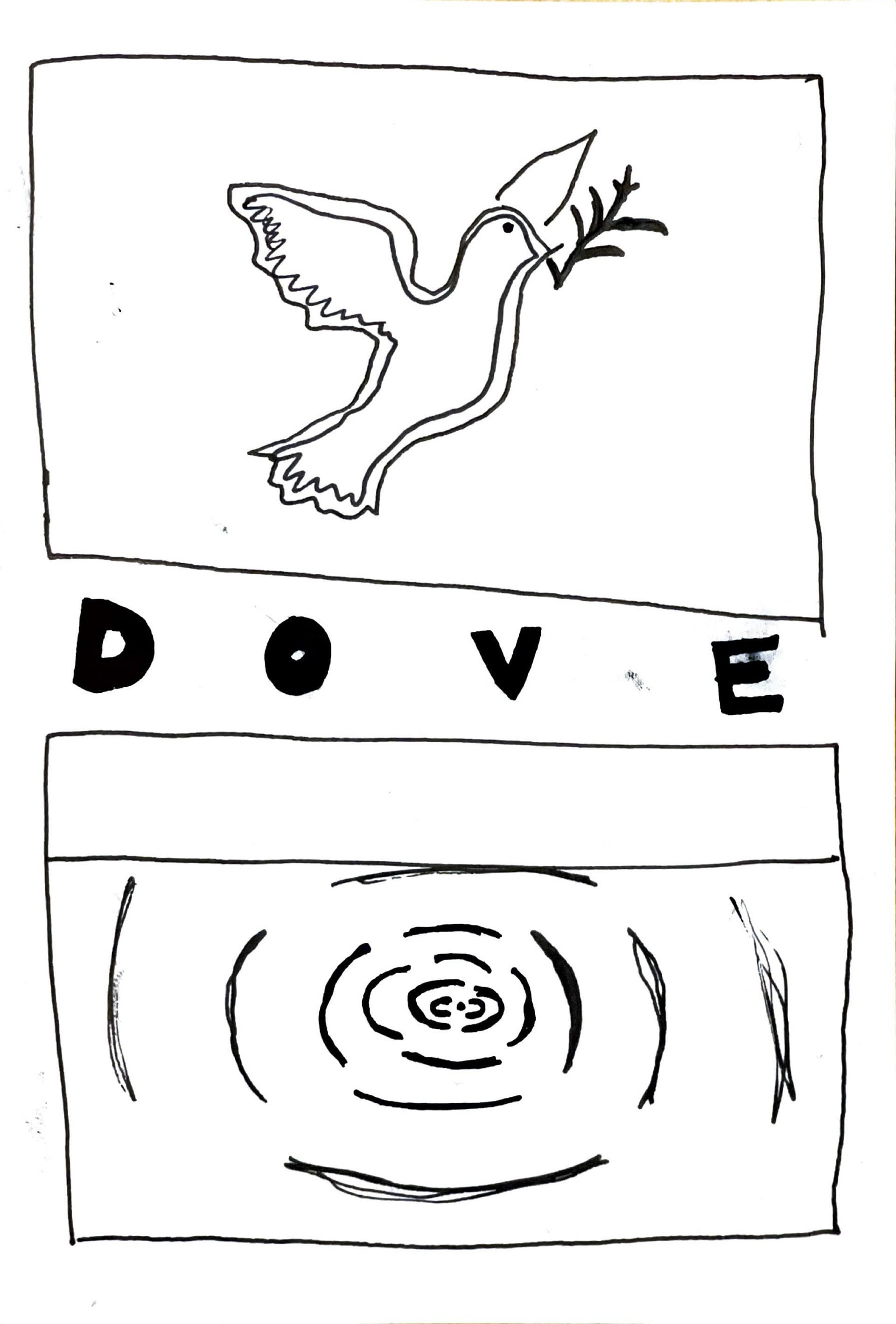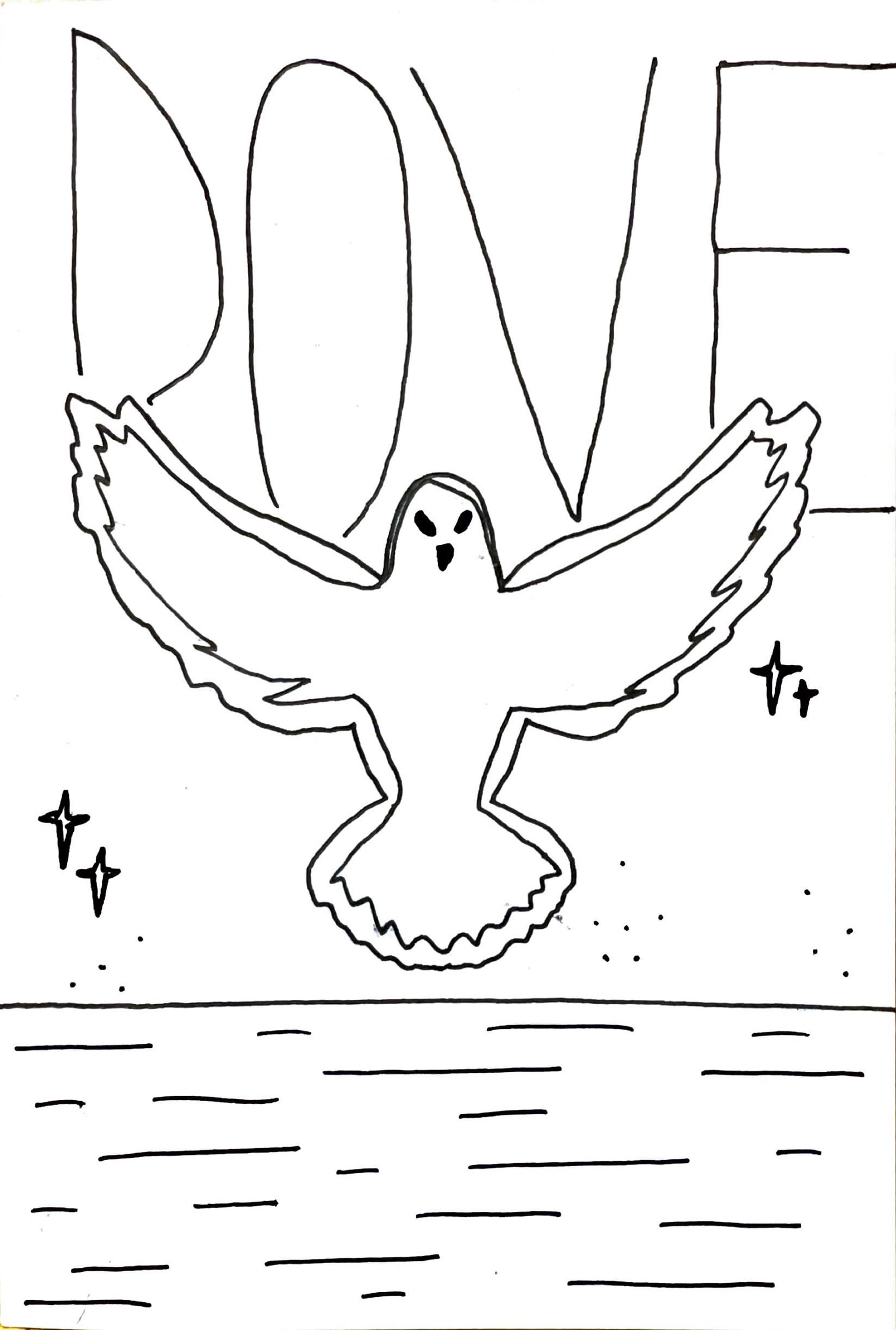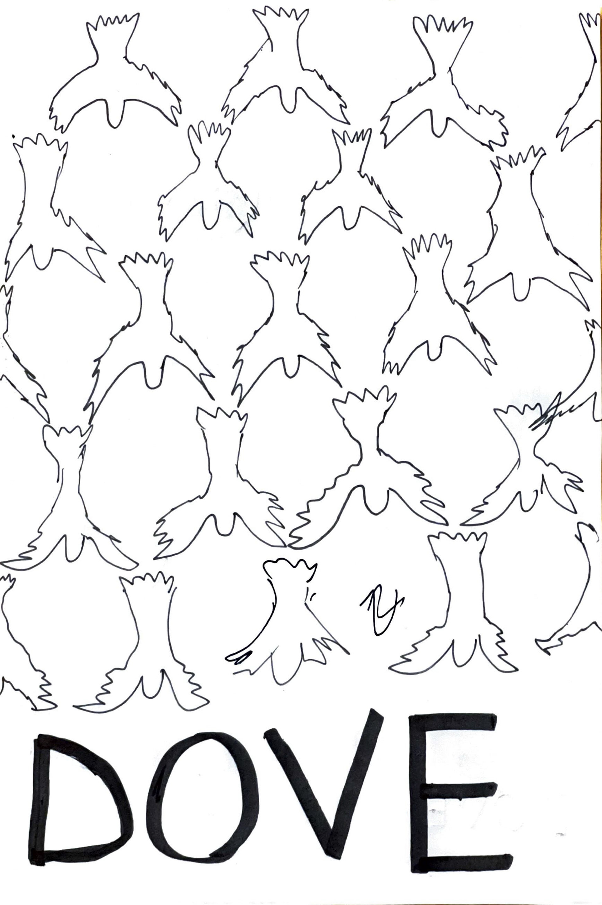 My sketching process involved drawing various dove focused designs. I went with different sizes, positioning and overall composition through rough sketches. I ended up going with the dove in the right corner.